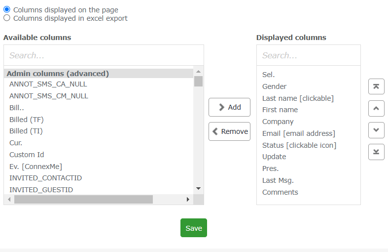 Next, check the box List of exported columns, then select the available columns you wish to add to the columns displayed.