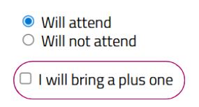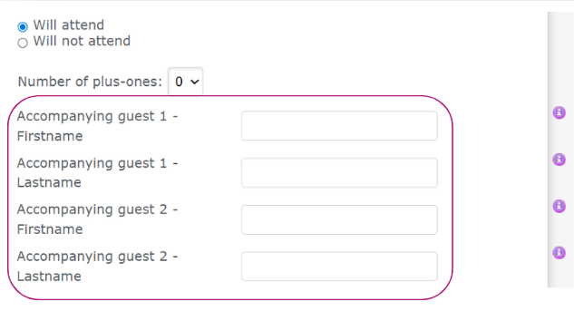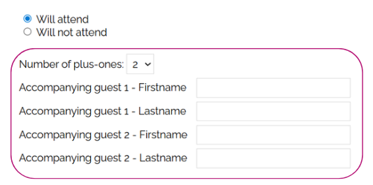 The participant can indicate whether they will attend with accompanying guests and, if applicable, enter the requested first and last names.