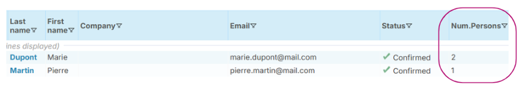 You can see whether a participant is accompanied via the “Num.Persons” column:
