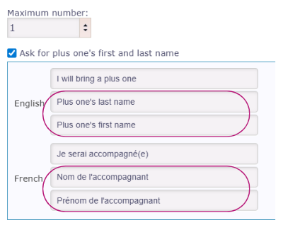 You can request the accompanying guest’s first and last name by checking the corresponding box.