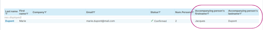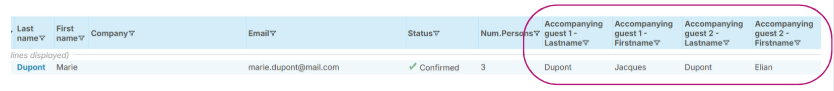 Note : Accompanying guests do not appear in your guests’ list as independent attendees. They are listed only on the accompanied participant’s row.