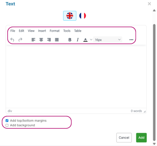 - Choose whether you want to add a background to your text cell or add margins around it