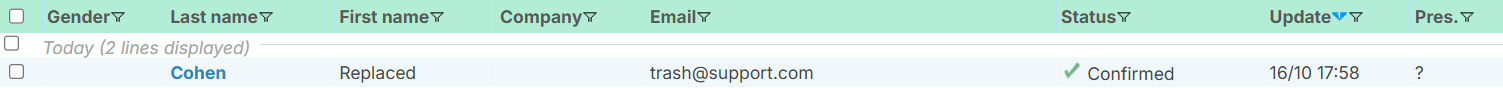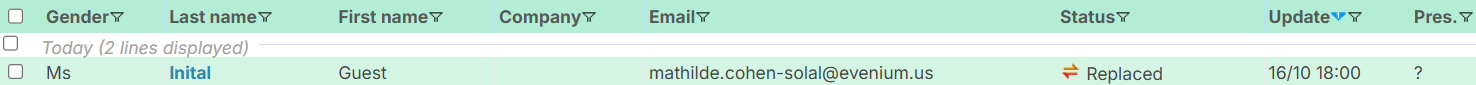 This feature helps you ensure the success of your event by optimizing the number of available seats. It also allows you to identify the participants who were initially invited but were unable to attend, as well as the people who replaced them. This allows you to keep the contact details of these substitutes, who may be interested in similar future events.