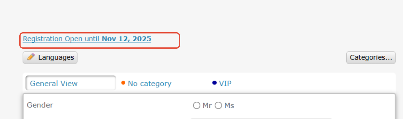 Click on the phrase “Registration form open until ...”: