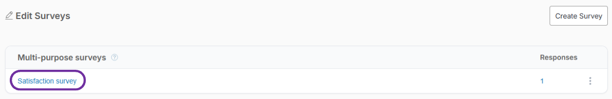 On the Edit satisfaction survey page, all your surveys are listed. For each one (except the default survey), you can: