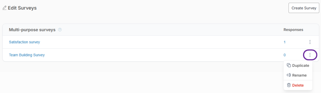 You can create multiple surveys to gather targeted feedback based on timing or theme, while keeping all your surveys organized and centrally managed.