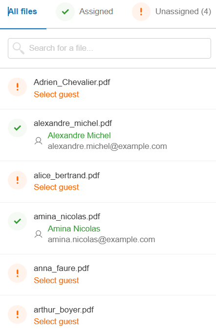 If a file is labeled lastname_firstname.pdf, it means a document has already been assigned to that participant in the current import.