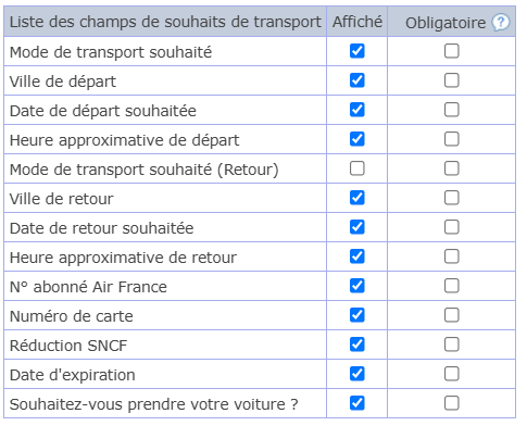- Oui : De nouveaux champs s’afficheront pour que l’invité puisse remplir les détails de son voyage. Par la suite, ce sera à l’organisateur de gérer le transport et de faire des propositions.
