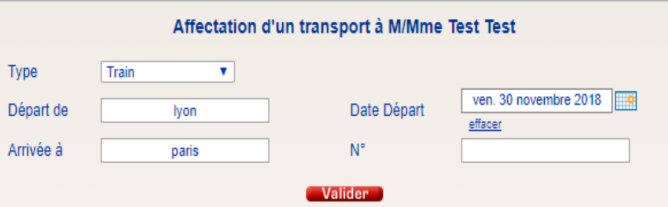 En ajoutant une réservation, l’organisateur doit affecter un plan de transport à un invité. Après validation, une nouvelle fenêtre s’ouvre.