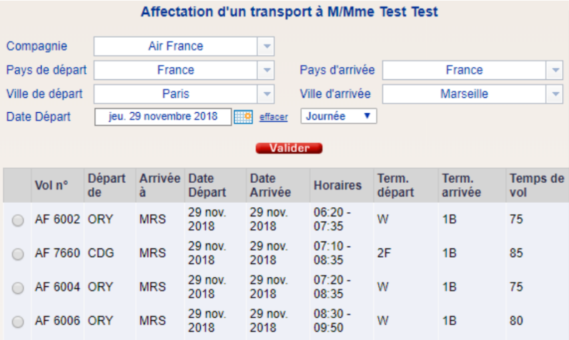 - À l’organisateur de rechercher un plan de transport via un GDS intégré et de l’attribuer à un participant