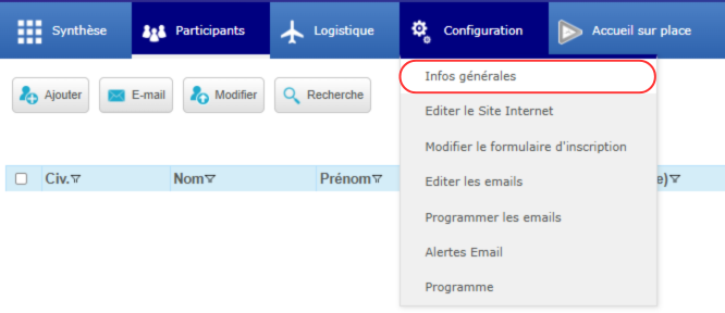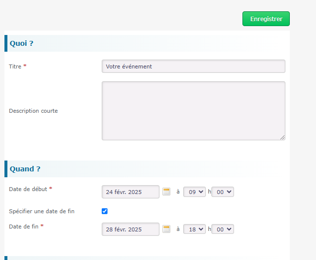 Une fois sur cette page, vous avez la possibilité de modifier le nom ainsi que les dates de votre événement.