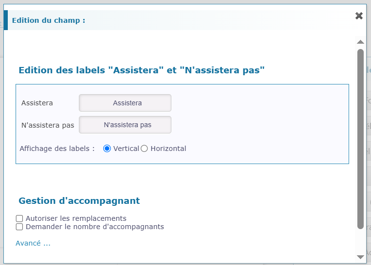 Sur votre formulaire, un bloc Assistera / N’assistera pas est affiché par défaut.