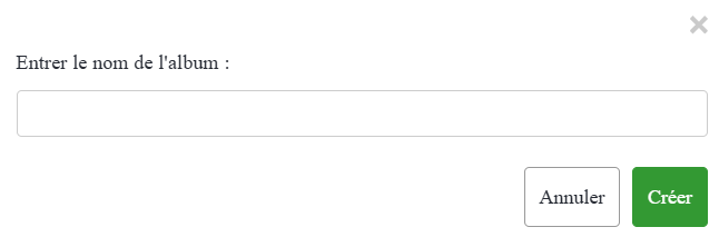Une fois que vous aurez cliqué sur le bouton ci-dessus, une fenêtre pop-up apparaîtra, et vous pourrez saisir le nom de votre nouvel album. L'étiquette sera définie une fois que vous aurez cliqué sur le bouton Créer.