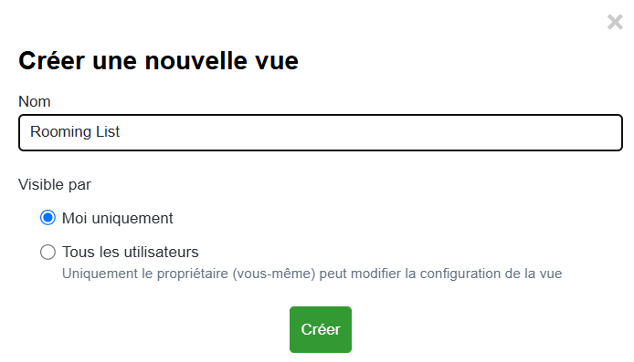 Visible par « Moi uniqueement » = vue disponible uniquement sur votre accès utilisateur
