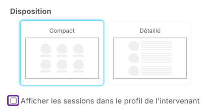 • En mode Détaillé, vous pouvez afficher les sessions auxquelles chaque intervenant participe