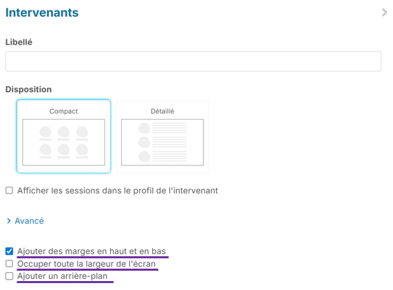 Ce module insère un bloc de texte dédié à l’affichage des intervenants de l’événement sur votre site internet.