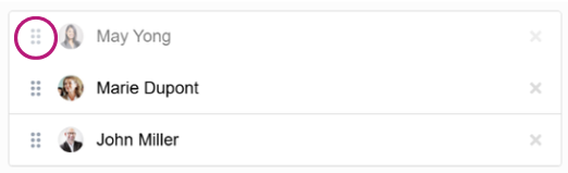 Modifiez l’ordre en cliquant sur les icônes et en utilisant le drag and drop pour déplacer les intervenants dans l'ordre souhaité.