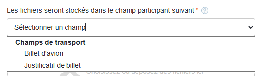 Choisissez le champ de stockage du fichier importé :